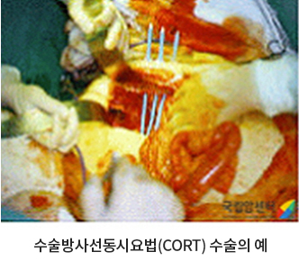 골반 내에 국소적으로 재발된 환자의 경우 골반 내용물제거술(Exenteration), 수술방사선동시요법(CORT), 측확장내골반절제술(LEER) 등을 시행하여 완치 및 생명 연장을 위해 노력하고 있습니다.